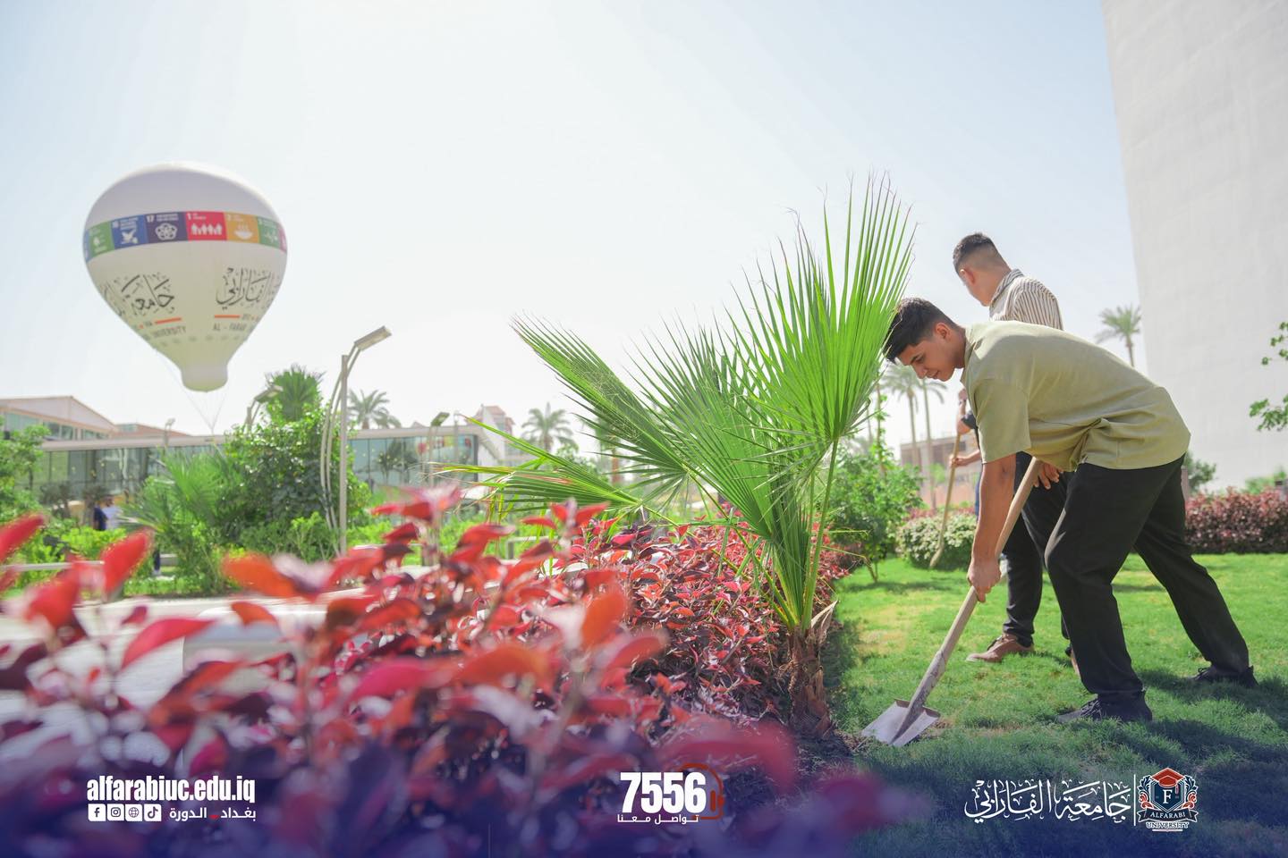 Under the supervision of Dr. Moayad Al-Jubouri, Chairman of the Board of Trustees at Al-Farabi University, and in accordance with the directives of the Ministry of Higher Education and Scientific Research, as well as the recommendations of the Permanent Ministerial Committee for Agriculture and Environment, Al-Farabi University has launched the “Al-Farabi Green Campaign” for tree planting within its campus.
