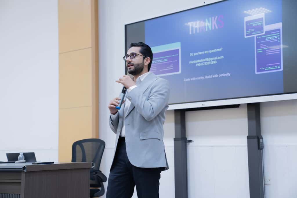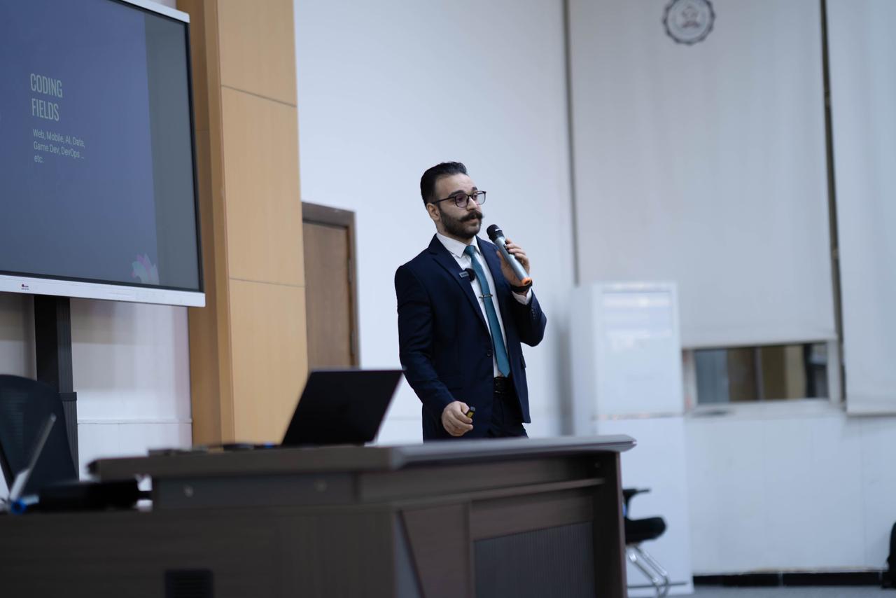 The Computer Engineering Department hosted Mr. Muntajab Al-Din Ahmed, Software Development Team Leader at “Taqaddum Al-Iraq” (TTech) and Assistant Engineer at the University of Baghdad. He delivered an in-depth technical session focusing on the essential skills students need to launch their careers as professional programmers.