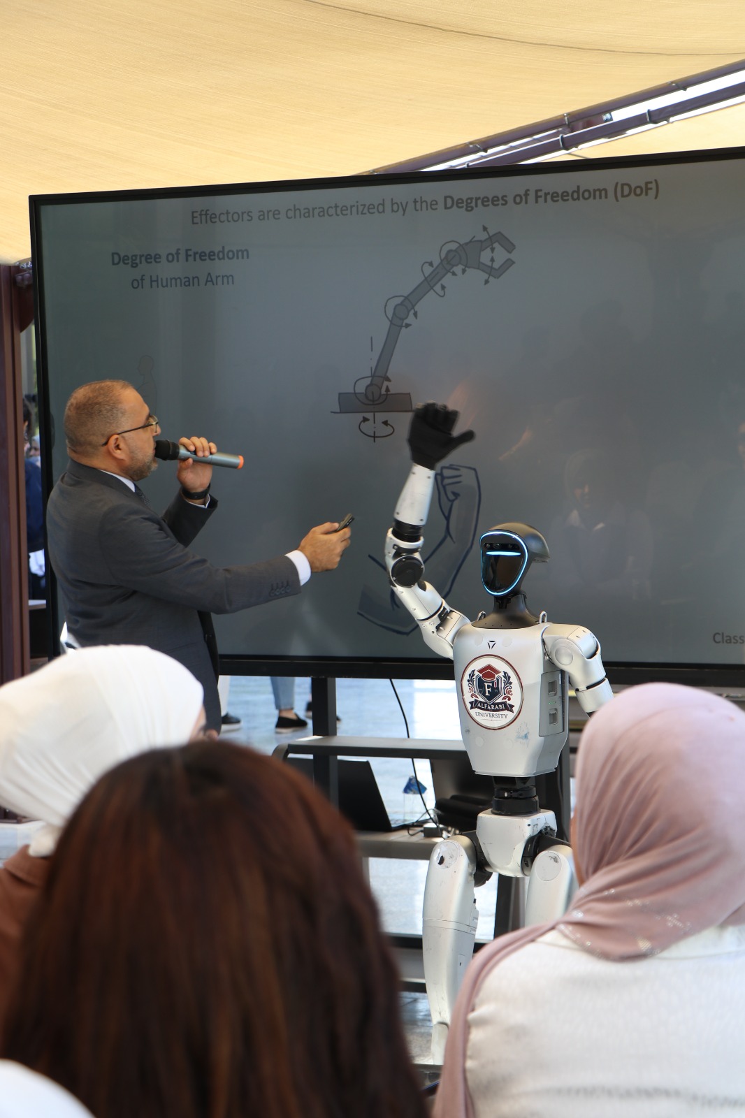 This week was distinguished by a specialized lecture delivered by Prof. Dr. Mazin Al-Hakeem, Assistant President of the University for Scientific Affairs, titled: “Unitree Robot Software, Hardware Perception, Motion Planning, Dynamics and Controls.”