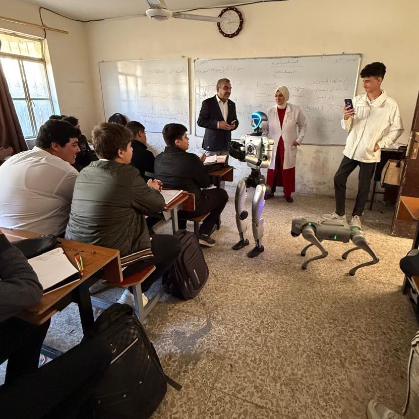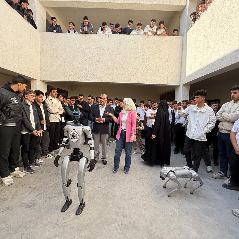 Driven by its commitment to community service and the goal of enhancing practical knowledge among vocational students regarding modern technologies, Al-Farabi University organized a scientific field visit to Al-Hadar Vocational Preparatory School for Boys in the Al-Dura district.