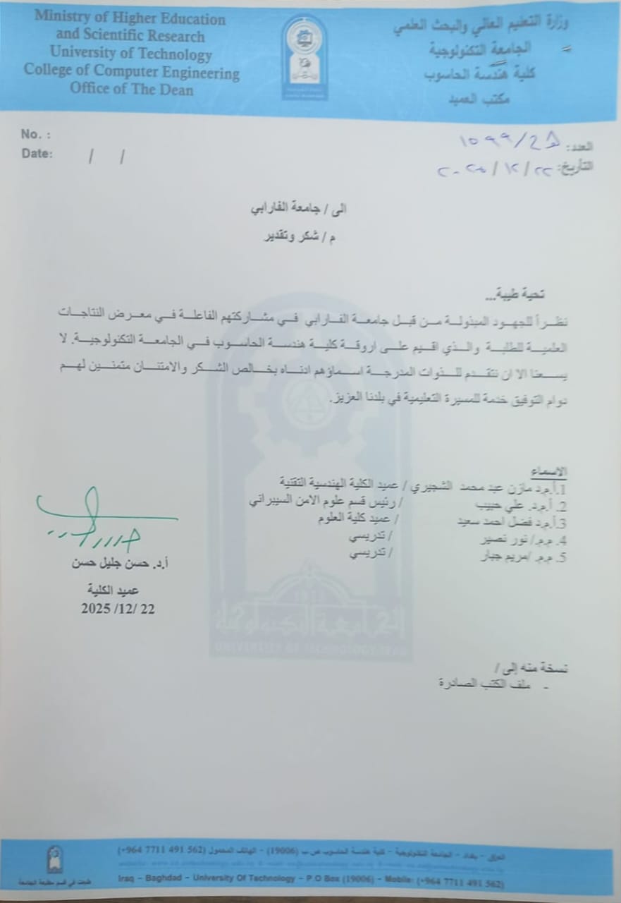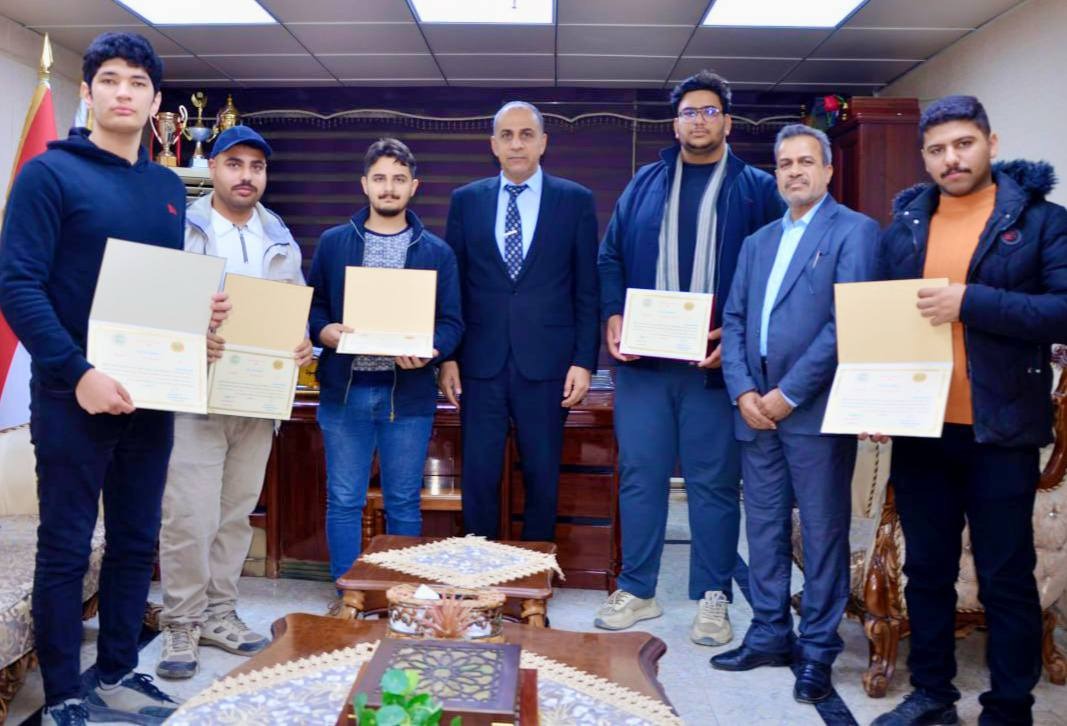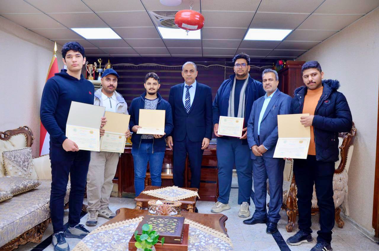 At the conclusion of the meeting, Dr. Abboud honored the participating students with certificates of appreciation, acknowledging their efforts and those of their colleagues. He wished them continued success and giving in their academic journey, expressing pride in the competitive spirit that serves the educational process in Iraq.