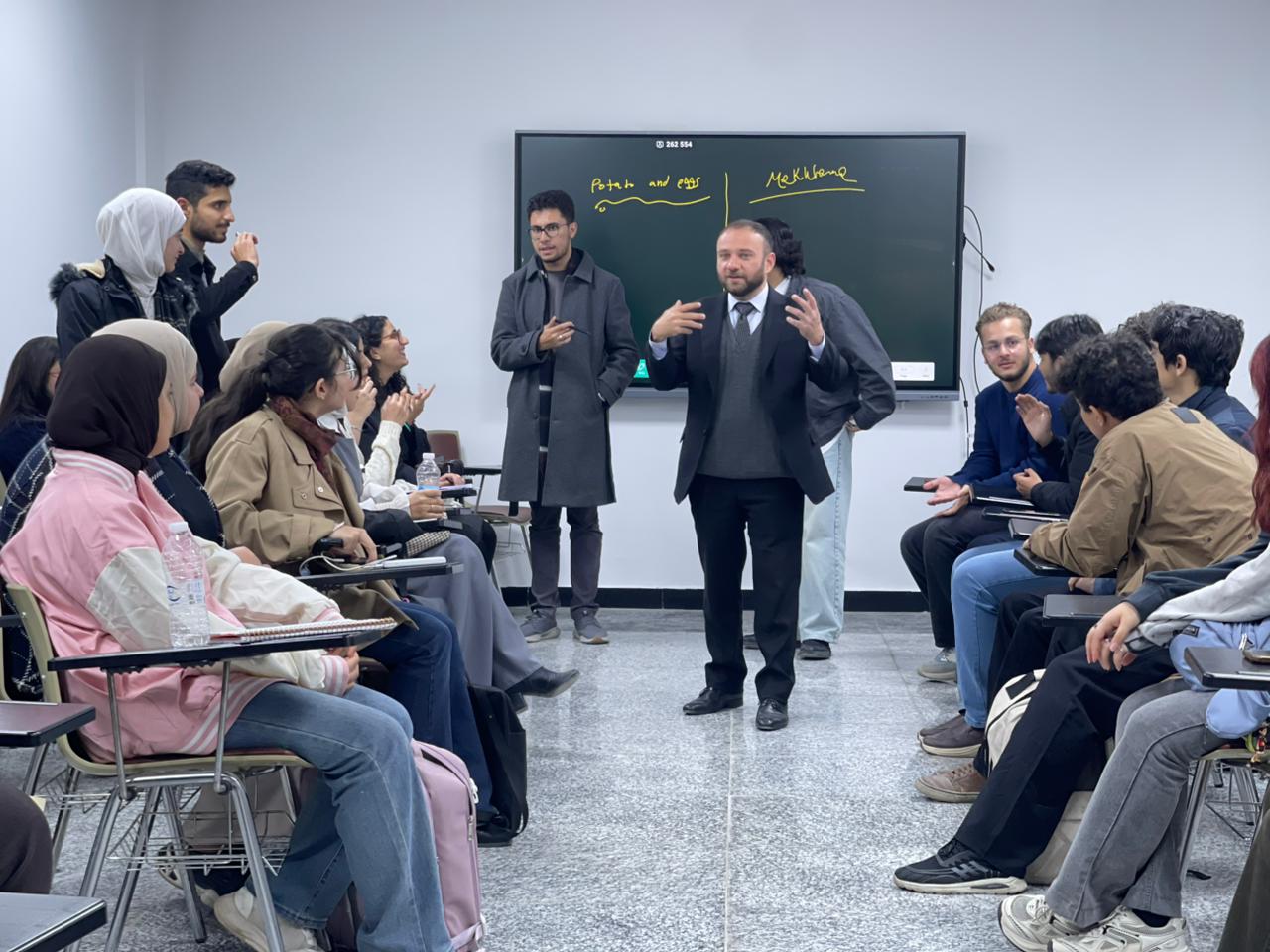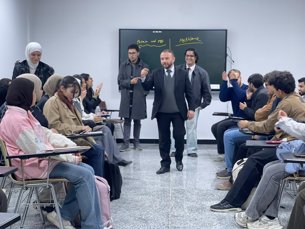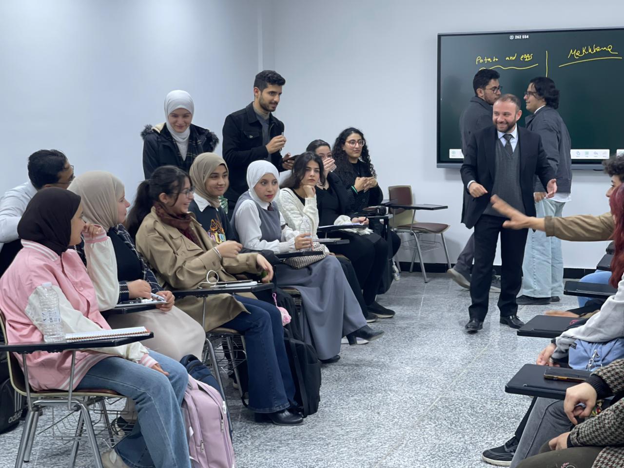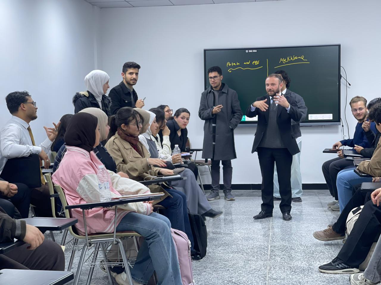 Amidst an atmosphere filled with enthusiasm and energy, the Al-Farabi Robot and Artificial Intelligence Club witnessed a distinctive interactive activity on Wednesday, December 24, 2025, during the second lecture of the English language course presented by Mr. Firas Ghazanfar.