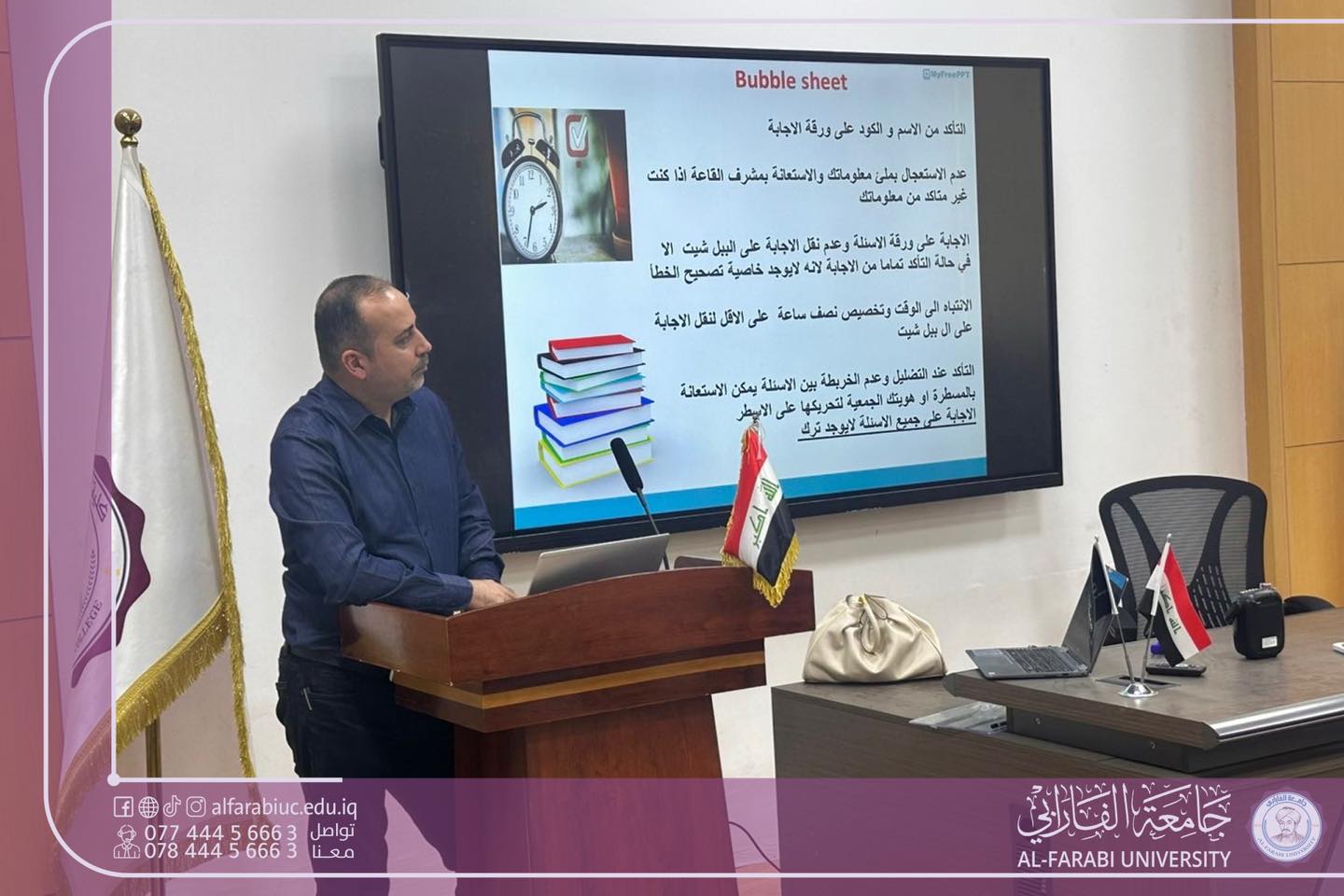 اقام قسم الصيدلة ورشة عمل عن الامتحانات التقويمية لطلبة المراحل المشمولين بالامتحانات التقويمية تتضمن ارشادات و نصائح عن الاستعداد للامتحانات والدراسة بجدية عالية وكذلك نصائح حول حل الاسئلة لاجتياز الامتحانات بنسب نجاح ممتازة وقد القاها كل من م.د مريم حامد و م.د صفاء فاخر يوم الثلاثاء الموافق ٢٣/٤/٢٠٢٤ وقد لاقت الورشة حضور واسع من طلبة المراحل المختلفة