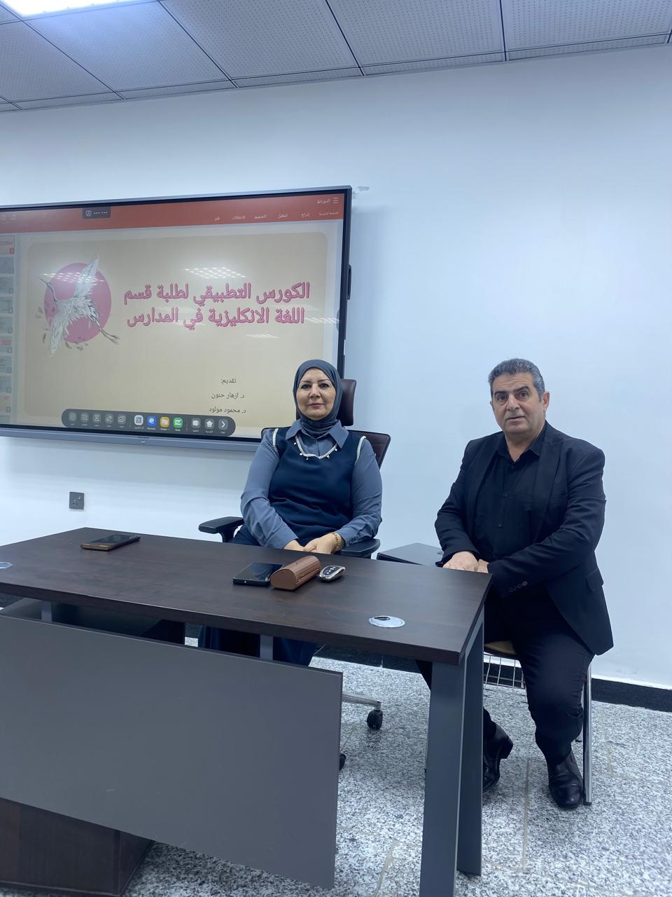 ألقت الدكتورة أزهار حنون محاضرة اليوم الأول على قاعة P41 في قسم اللغة الإنجليزية، متناولةً محاور مهمة حول أساليب الإعداد للتطبيق وآليات متابعة الدروس داخل الصفوف.
