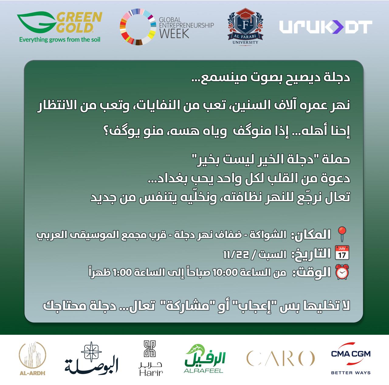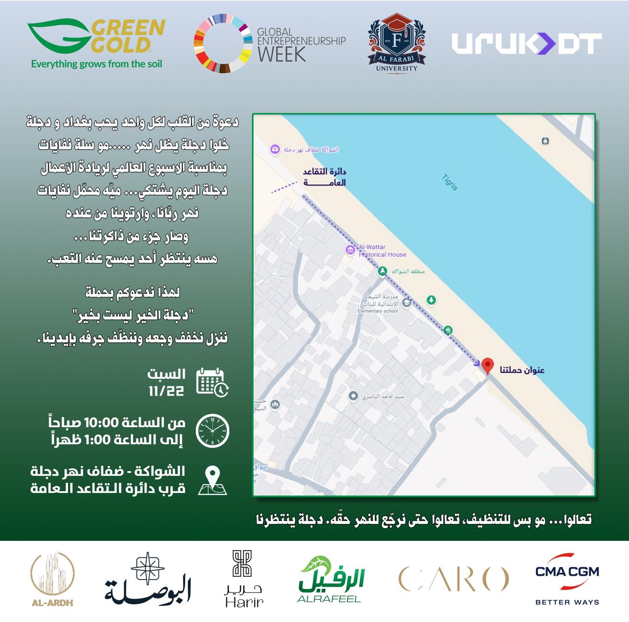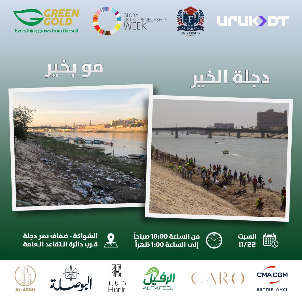 والتي تهدف إلى تنظيف ضفاف نهر دجلة الغالي من النفايات، ضمن مبادرة شبابية تسعى لإحياء ضفاف النهر وتعزيز الوعي البيئي.