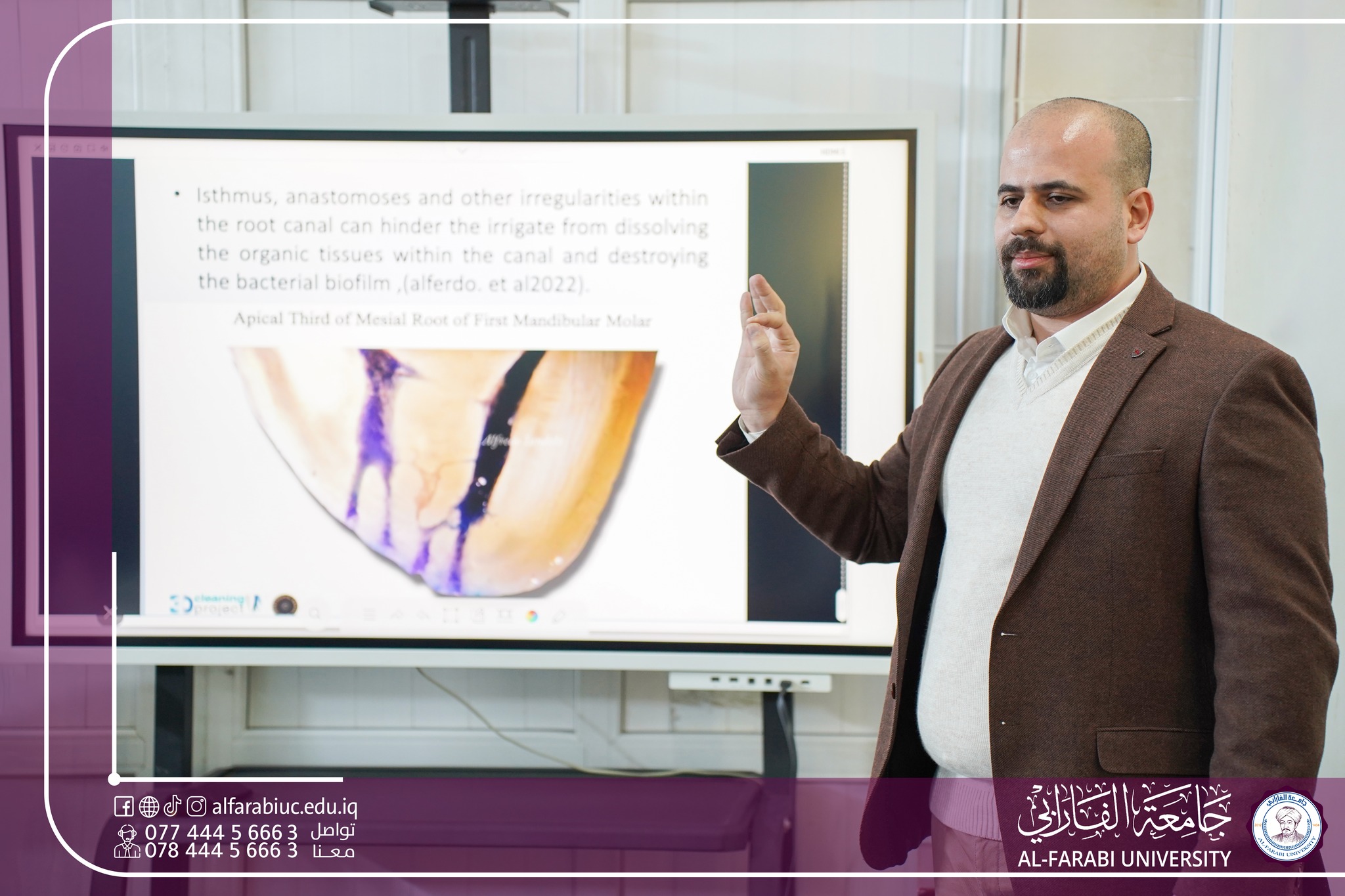 The Department of Dentistry at Al-Farabi University held a scientific workshop entitled:(Applications of ultrasound waves in root fillings), presented by assistant lecturer Sherif Al-BayatiThe workshop included a practical explanation of the U600 device and its most important applications in the field of treating root fillingsThis workshop comes within the curriculum of activities of the Department […]